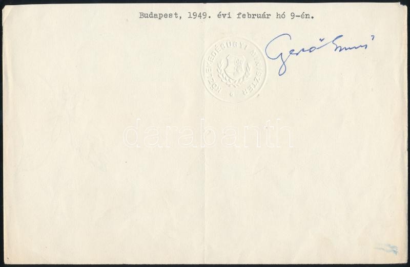 Gerő Ernő (1898-1980) közművelődésügyi miniszter, későbbi MDP első tit... https://www.darabanth.com/de/311-Fernauktion/311.0/Andere-Sammelgebiete/Signatur~300018/Gero-Erno-1898-1980-kozmuvelodesugyi-miniszter-kesobbi-MDP-elso-titkar-alairasa-dok~II1704077