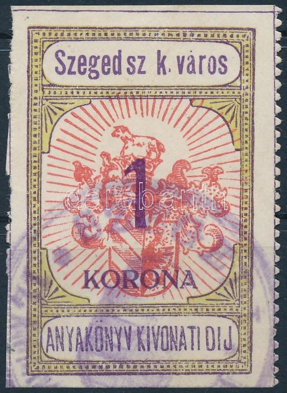 1913 Szeged városi anyakönyvi kivonati díj 1K az "sz" és "k" után hián... https://www.darabanth.com/de/311-Fernauktion/311.0/Andere-Sammelgebiete/Stempelmarken~300049/1913-Szeged-varosi-anyakonyvi-kivonati-dij-1K-az-sz-es-k-utan-hianyzik-a-pont-tevnyomat-~II1694140