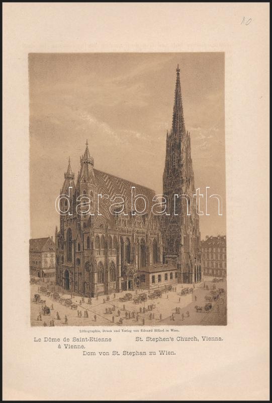 cca 1870 Szent István Dóm Bécsben, Wien Eduard Hölzel, litográfia, jó állapotban, 11x16 cm./ cca 1870 St. Stephen's Church, Vienna, Wien, Eduard Hölzel, Litography, in good condition, 11x16 cm.
