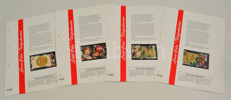 Beschreibung: Coca Cola telefonkártyák 4 db használatlan telefonkártya előnyomott albumlapokon.