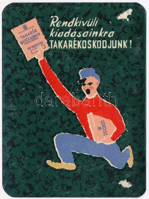1957 OTP reklámos, takarékoskodásra buzdító kártyanaptár https://www.darabanth.com/de/311-Fernauktion/311.0/Andere-Sammelgebiete/Werbungen~300020/1957-OTP-reklamos-takarekoskodasra-buzdito-kartyanaptar~II1695202