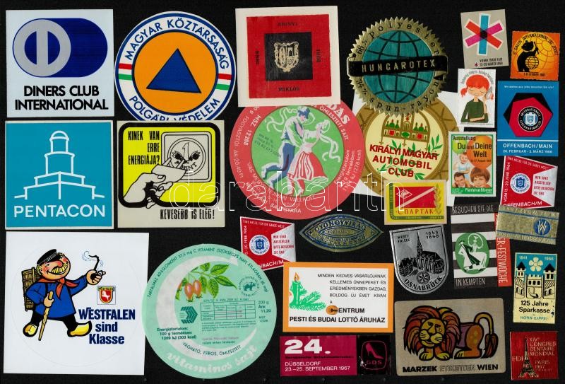 40 db vegyes címke, matrica (Magyar Köztársaság Polgári Védelem, Diner... https://www.darabanth.com/de/311-Fernauktion/311.0/Andere-Sammelgebiete/Werbungen~300020/40-db-vegyes-cimke-matrica-Magyar-Koztarsasag-Polgari-Vedelem-Diners-Club-International-Pe~II1699459