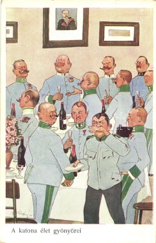 A katona élet gyönyörei / K.u.K. Officers' feast B. K. W. I. 879-2. s:... https://www.darabanth.com/de/311-Fernauktion/311.0/Ansichtskarten/Militaria~500068/A-katona-elet-gyonyorei-KuK-Officers-feast-B-K-W-I-879-2-s-Schonpflug~II1704052