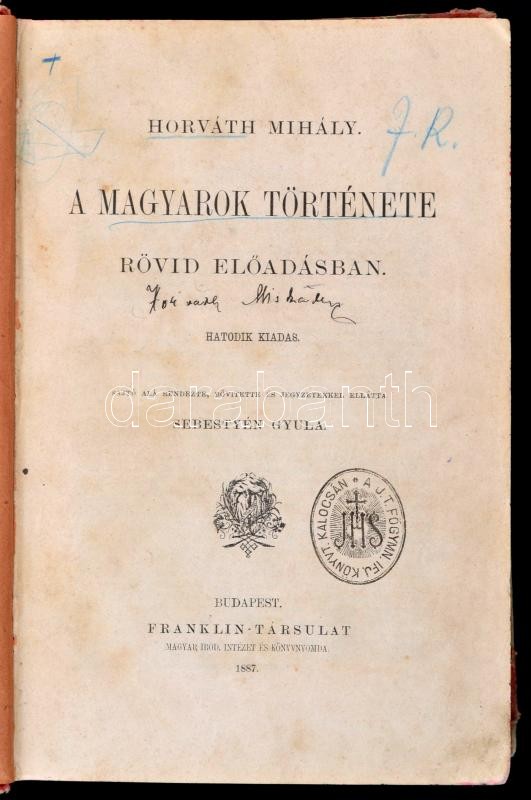 Horváth Mihály: A magyarok története rövid előadásban. Bp., 1887, Fran... https://www.darabanth.com/de/311-Fernauktion/311.0/Bucher/Bucher-Geschichte~300032/Horvath-Mihaly-A-magyarok-tortenete-rovid-eloadasban-Bp-1887-Franklin-Korabeli-felvas~II1684536