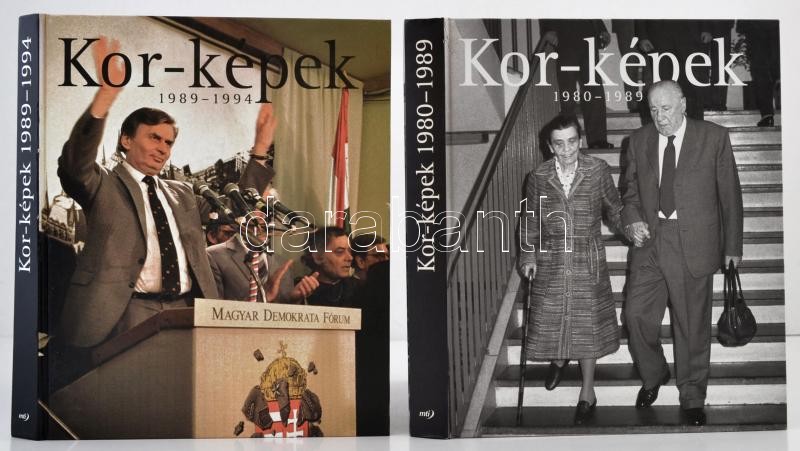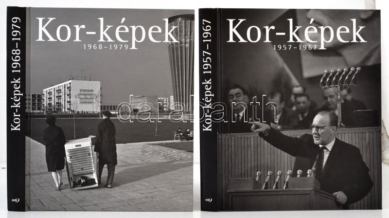 Kor-képek sorozat 8 kötet (1938-1945,1945-1947,1948-1955,1956,1957-1967,1968-1979,1980-1989,1989-1994). Szerk.: VInce Mátyás, Féner Tamás. Gazdag képanyaggal. Bp.,2004-2010, MTI. Kiadói kartonált papírkötés, 1980-1989-es kötet felső sarka sérült, egyébként jó állapotban.
