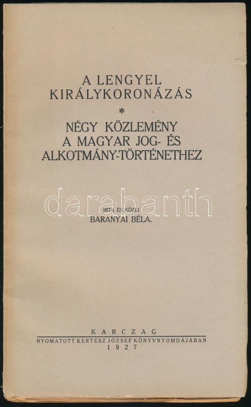 Baranyai Béla: A lengyel királykoronázás. Négy közlemény a magyar jog- és alkotmánytörténethez.