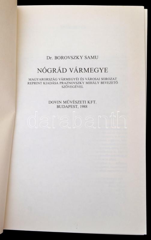 Dr. Borovszky Samu (szerk.): Magyarország vármegyéi és városai. Nógrád vármegye. Bp., 1988, Dovin Művészeti Kft. Reprint kiadás. Kiadói egészvászon kötésben, kiadói papír védőborítóban. Jó állapotban.