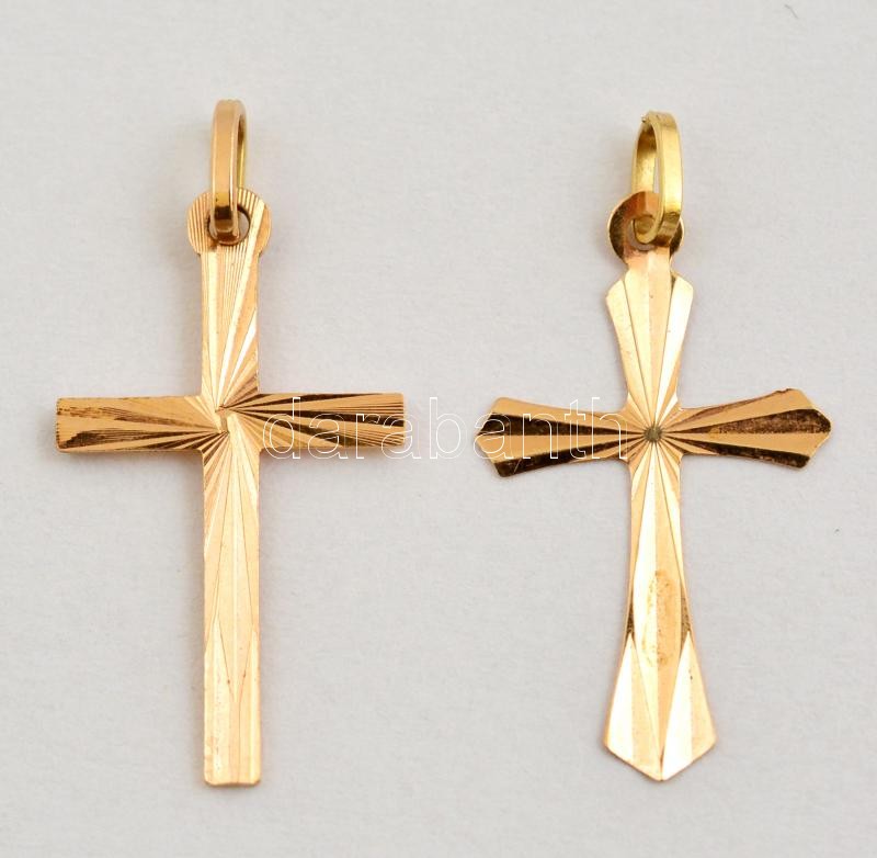 Arany (Au.) 14 K kereszt medál ( 2 db), jelzett, együtt nettó: 0,9 g https://www.darabanth.com/de/311-Fernauktion/311.0/Juwelen/Juwelen~500088/Arany-Au-14-K-kereszt-medal-2-db-jelzett-egyutt-netto-0-9-g~II1701690