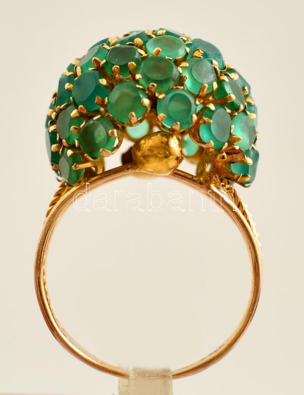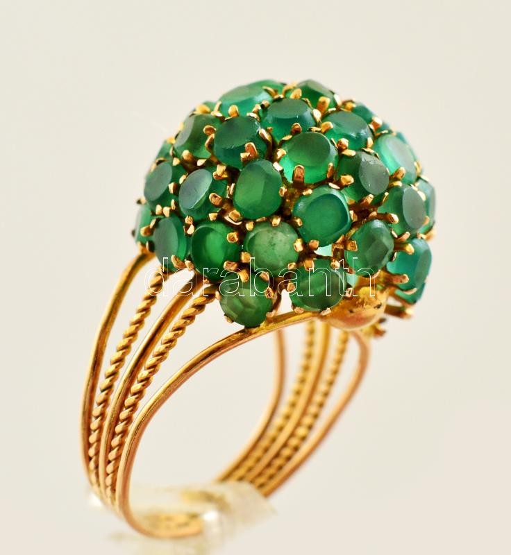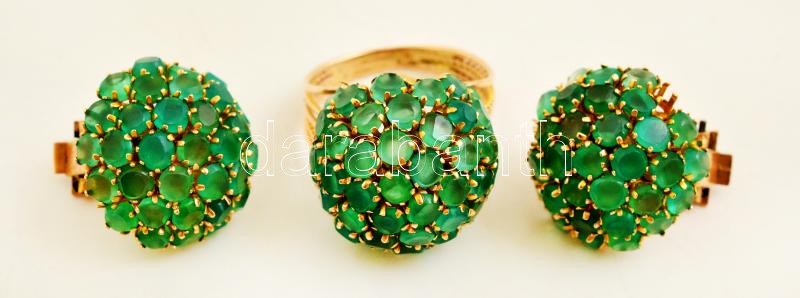 Beschreibung: Arany (Au.) 14 K smaragd köves klipsz és gyűrű, jelzett, együtt bruttó:12 g, 2 db kő hiányzik, méret: 49