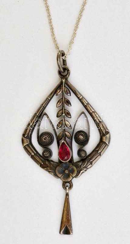 Beschreibung: Ezüst (Ag.) filigrán medál szintetikus kővel, jelzett, ezüst lánccal, bruttó: 4 g