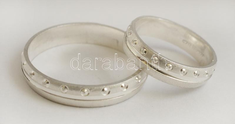 Beschreibung: Ezüst(Ag) mintás jegygyűrűpár (2 db), jelzett, méret: 49 és 66, nettó: 6,2 g