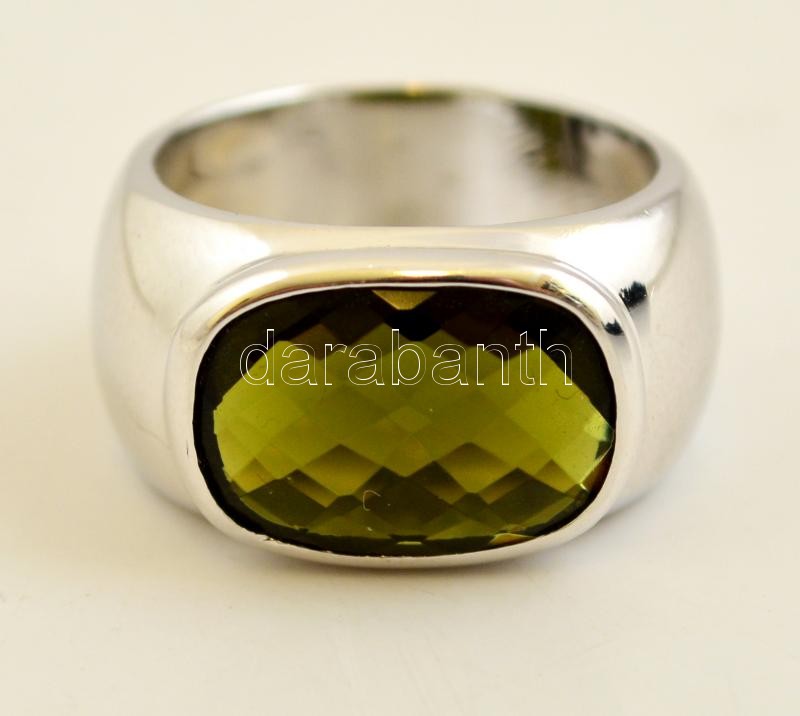 Beschreibung: Ezüst(Ag) zöld köves gyűrű, jelzett, méret: 54, bruttó: 6,9 g