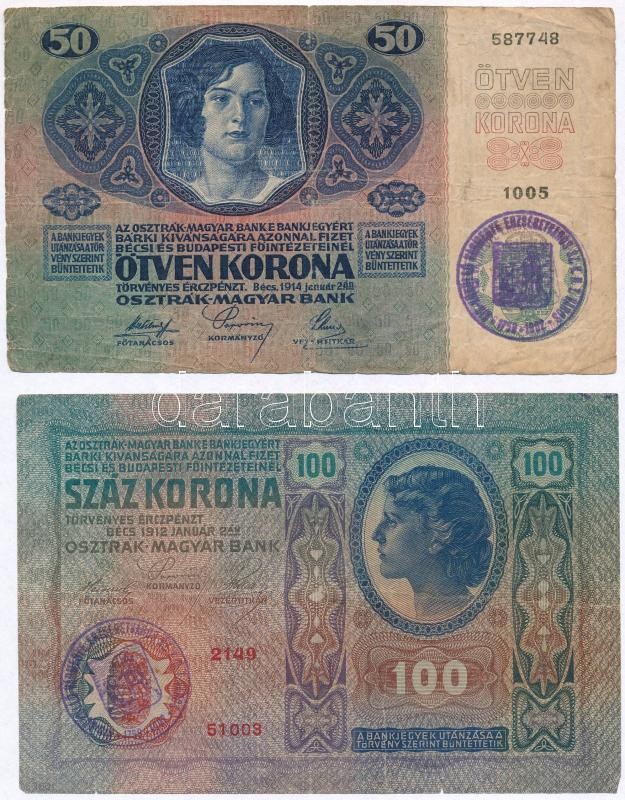 1912. 100K + 1914. 50K mindkettő valószínűleg hamis "Erzsébetváros" fe... https://www.darabanth.com/de/311-Fernauktion/311.0/Numismatik/Ungarische-Banknoten~7/1912-100K-plus-1914-50K-mindketto-valoszinuleg-hamis-Erzsebetvaros-felulbelyegzessel-fake~II1695749