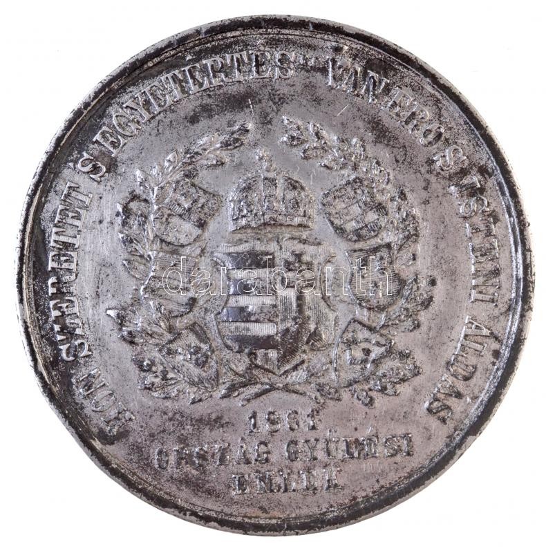 1861. "Országgyűlési Emlék" fém emlékérem. "HON SZERETET 'S EGYETÉRTÉSBE VAN ERŐ 'S ISTENI ÁLDÁS - 1861 ORSZÁG GYŰLÉSI EMLÉK / E HAZA CSAK AKKOR TULAJDONUNK HA TÖRVÉNYEINKET NEM IDEGENEK KEZELIK - HAZÁDNAK RENDÜLETLENÜL LÉGY HÍVE....". (50mm) T:2 ph., patina
