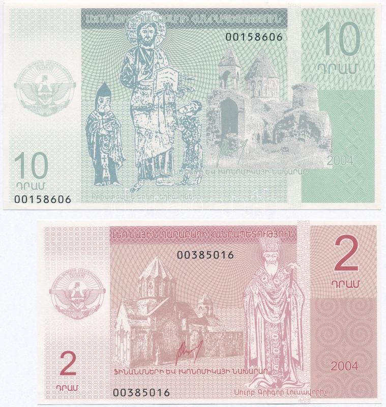 Nagorno-Karabakh 2004. 2 Dram + 1... https://www.darabanth.com/de/311-Fernauktion/311.0/Numismatik/Weltweit-Banknoten~12/Nagorno-Karabakh-2004-2D-plus-10D-TI--Nagorno-Karabakh-2004-2-Dram-plus-10-Dram-CUNC~II1698314