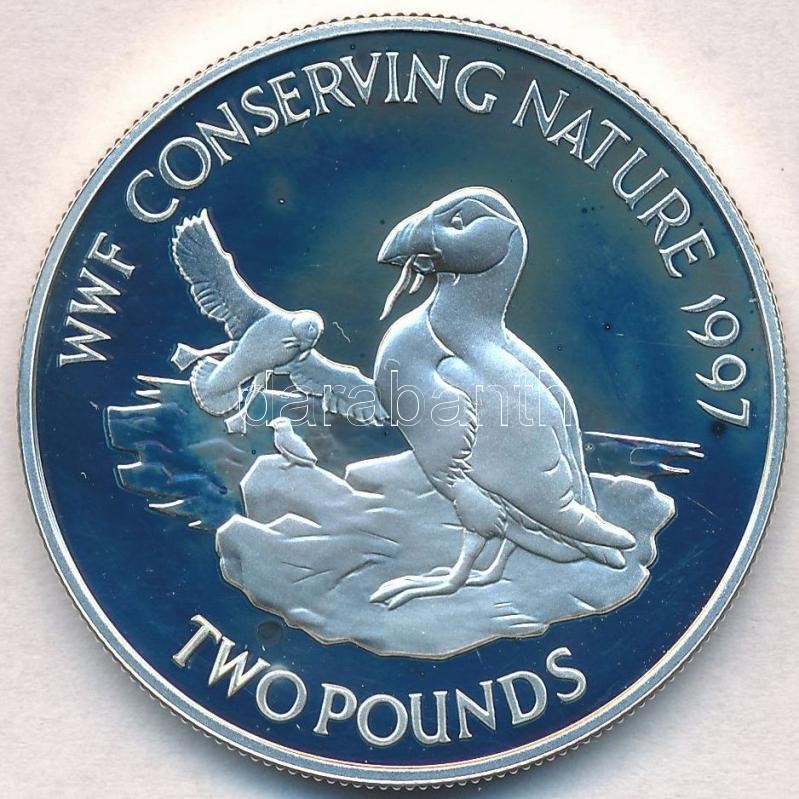 Alderney 1997. 2 Pounds Ag "Puffin birds" C:XF(PP)