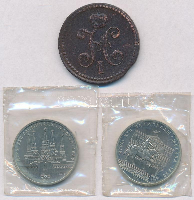 Orosz Birodalom 1840. 3k Cu "I. Miklós" + Szovjetunió 1978. 1R Cu-Ni-Zn "Olimpia" séerült fóliacsomagolásban+ 1980. 1R Cu-Ni "Olimpia" sérült fóliacsomagolásban T:1--3 patina, lapkavég Russian Empire 1840. 3 Kopeks Cu "Nicholas I" + Soviet Union 1978. 1 Rouble Cu-Ni-Zn "Olympics" in damaged foil packing + 1980. 1 Rouble Cu-Ni "Olympics" in damaged foil packing C:AU-F patina, plachet edge Krause C#146.1, Y#153.1, Y#177