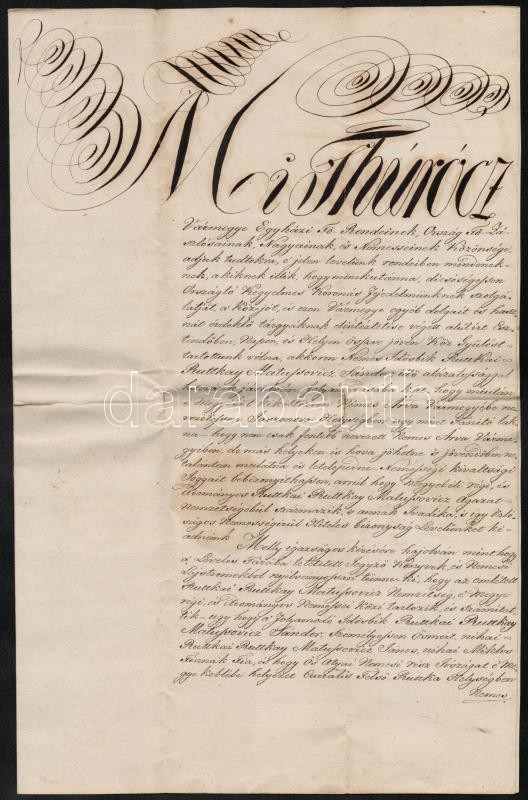 Beschreibung: 1842 Túrócz vármegyei rendek nemességigazolása Ruttkay család sarja részére, aláírásokkal