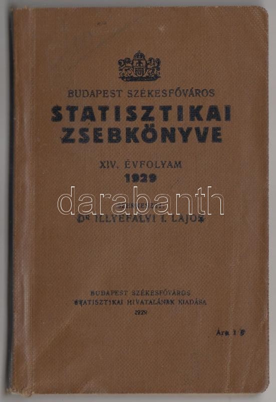 1929 Budapest Székesfőváros Statisztikai Zsebkönyve, XIV. évf. 1929, Szerk.: Dr. Illyefalvi I. Lajos. Bp., 1929, Budapest Székesfőváros Statisztikai Hivatala, 169+1 p. Kiadói nyl-kötésben