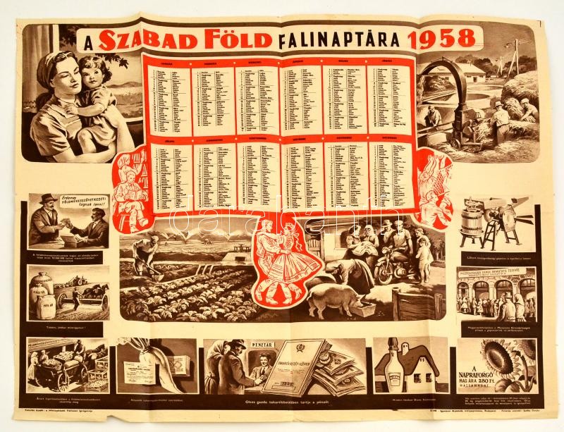 1958 a Szabad Föld falinaptára, a hajtások mentén kis szakadásokkal https://www.darabanth.com/de/312-Fernauktion/312.0/Andere-Sammelgebiete/Drucksachen~28/1958-a-Szabad-Fold-falinaptara-a-hajtasok-menten-kis-szakadasokkal~II1712068