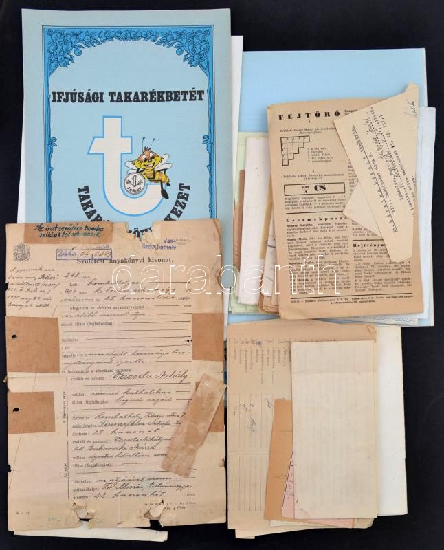 cca 1930-1980 Vegyes papírrégiség tétel, köztük, okmányok, betétkönyve... https://www.darabanth.com/de/312-Fernauktion/312.0/Andere-Sammelgebiete/Drucksachen~28/cca-1930-1980-Vegyes-papirregiseg-tetel-koztuk-okmanyok-betetkonyvek-gyaszjelentesek~II1681038