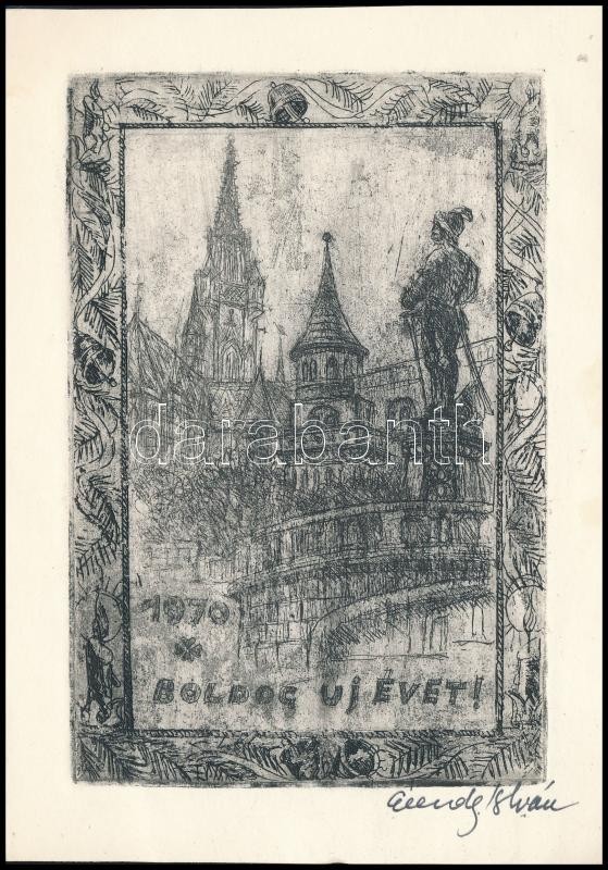 Beschreibung: 3 db részben alkalmi kisgrafika, rézkarc, papír, jelzettek, különböző méretben