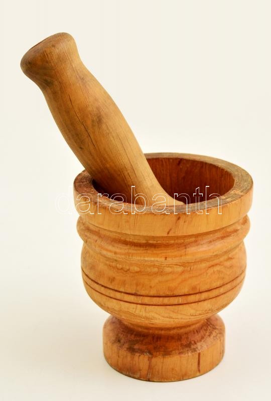 Beschreibung: Fa mozsár, törővel, m: 24 és 19,5 cm