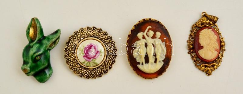 Beschreibung: Vegyes mutatós bizsu tétel: 3 db bross, 1 db függő (közte két kámeás díszítésű)