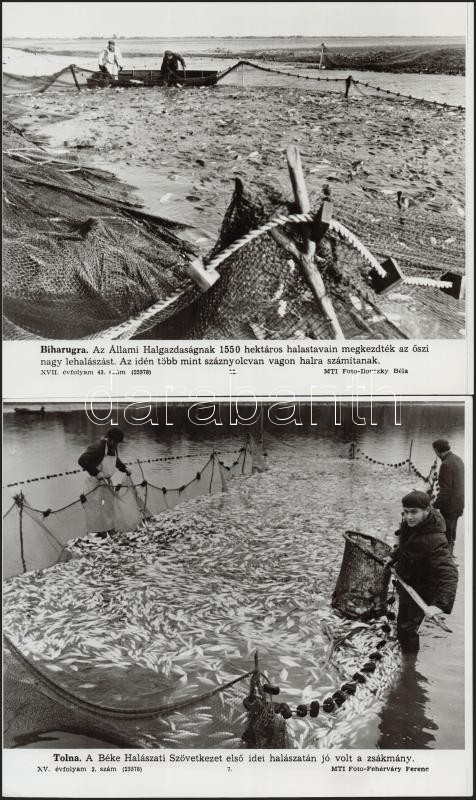 Beschreibung: cca 1960-1970 4 db halászattal kapcsolatos MTI-fotó, feliratozva, különböző méretben