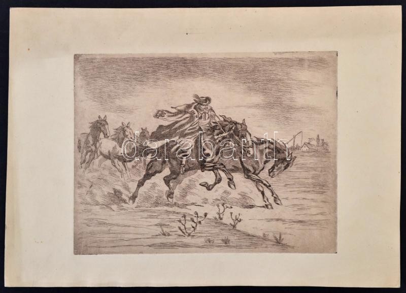Jelzés nélkül: Vágtató csikós. Rézkarc, papír, 18×23 cm https://www.darabanth.com/de/312-Fernauktion/312.0/Andere-Sammelgebiete/Gemalde-und-Grafiken~1/Jelzes-nelkul-Vagtato-csikos-Rezkarc-papir-18C39723-cm~II1691955