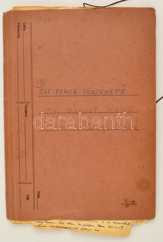 Vaszary János (1899-1963) Egy pince története című kétfelvonásos színdarabjának kézirata végig magyar nyelven. Összesen kb 60 beírt oldalon + egy másik darab töredéke / Autograph play manuscript from Janos Vaszary in Hungarian
