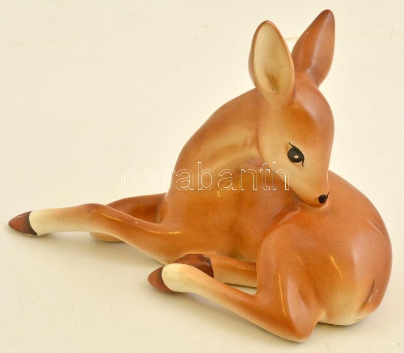 Beschreibung: Őzike, kerámia figura, kézzel festett, jelzés nélkül, alján apró lepattanással, kopásnyomokkal, 20x14,5 cm