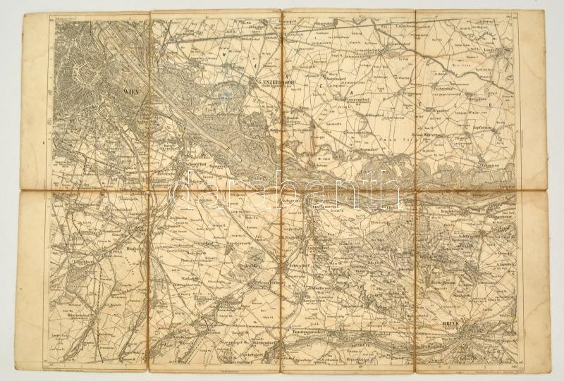 cca 1880 Bécs és környékének katonai térképe, 1:75.000, vászonra kasírozva, 39x57 cm./ cca 1880 Military map of Wien and surroundings, 1:75.000, on cancas, 39x57 cm