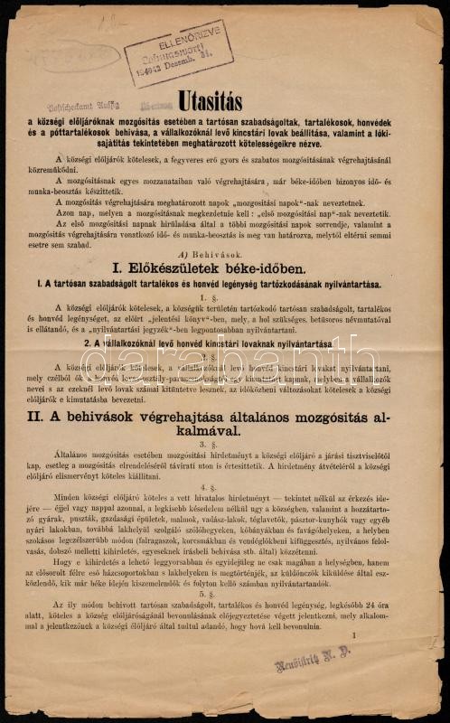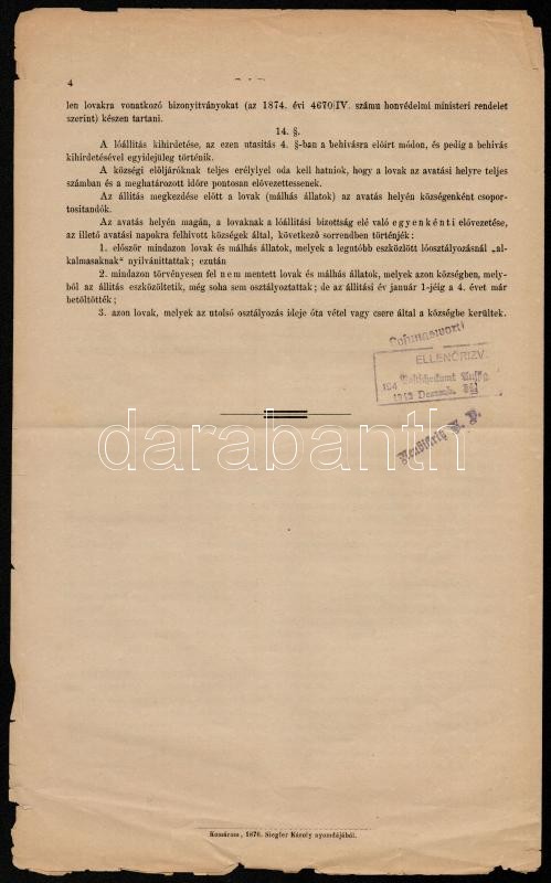 1876 Mozgósítás esetére szóló utasítás, 4 p., szélein sérülésekkel https://www.darabanth.com/de/312-Fernauktion/312.0/Andere-Sammelgebiete/Militaria~26/1876-Mozgositas-esetere-szolo-utasitas-4-p-szelein-serulesekkel~II1667791