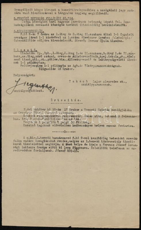 Beschreibung: 1929 M. kir. 1. honvéd tábori tüzérosztály parancsnokság 204. és 213. számú osztály napiparancsai, 2 db