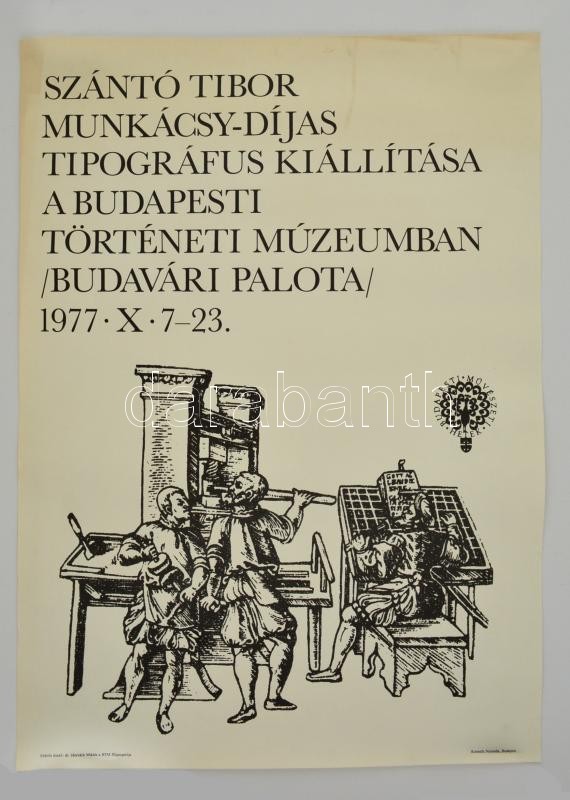1977 2 db kiállítási plakát: Déri Múzeum Debrecen, Szántó Tibor Munkácsy-díjas tipográfus kiállítása a Budapesti Történeti Múzeumban, 59x42 és 69x49,5 cm