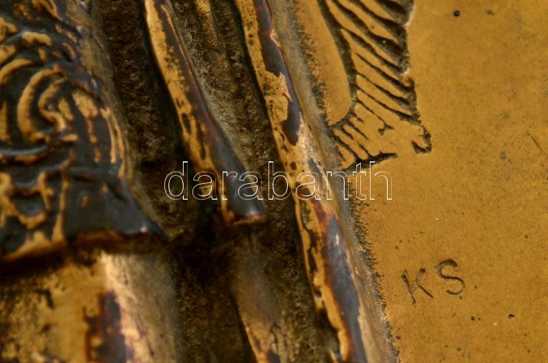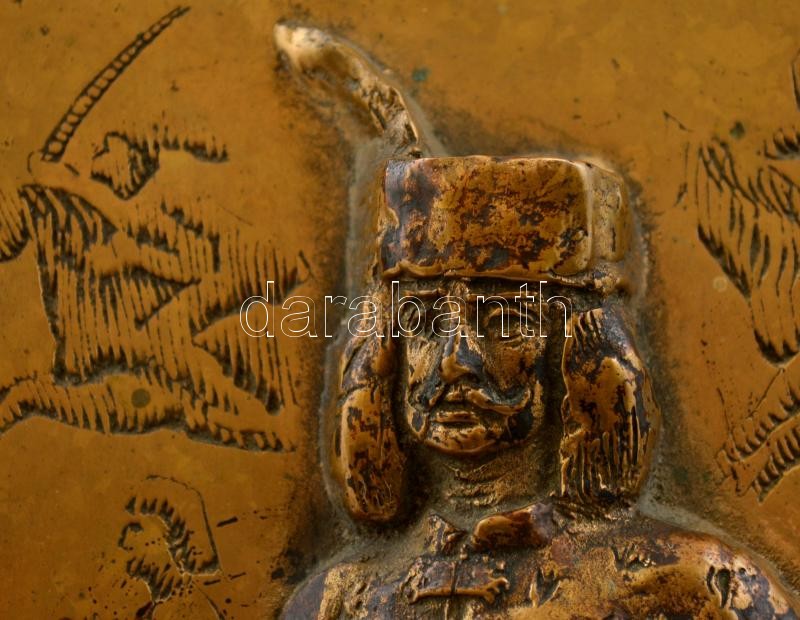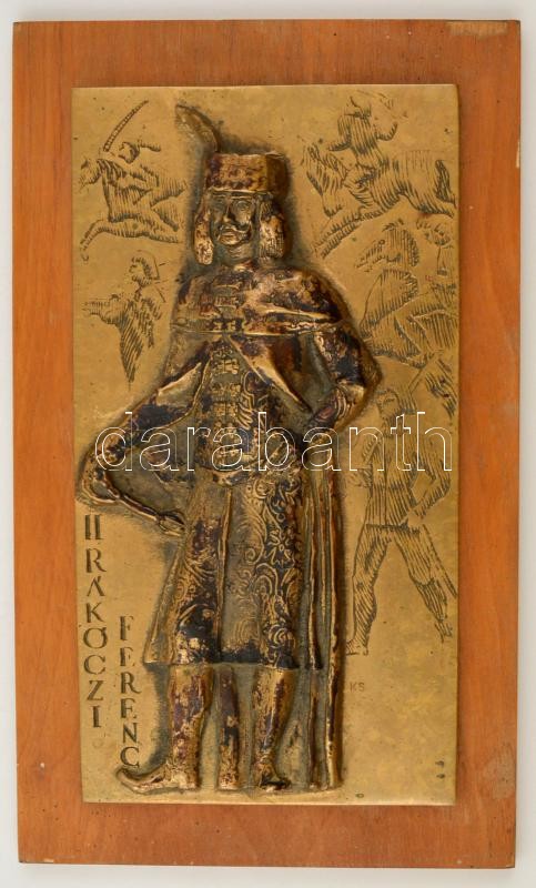 Kiss Sándor (1925-1999): II. Rákóczi Ferenc falikép, bronz, fára ragasztva, jelzett, 29×15 cm.