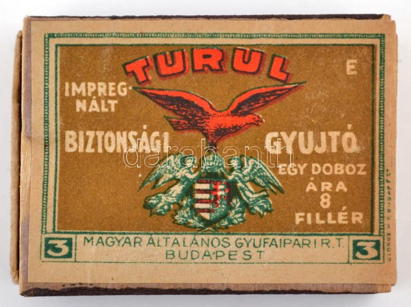 cca 1930 Turul impregnált biztonsági gyújtó - régi gyufásdoboz, tartal... https://www.darabanth.com/de/312-Fernauktion/312.0/Andere-Sammelgebiete/Streichholzer-Etikett~22/cca-1930-Turul-impregnalt-biztonsagi-gyujto--regi-gyufasdoboz-tartalommal~II1707914