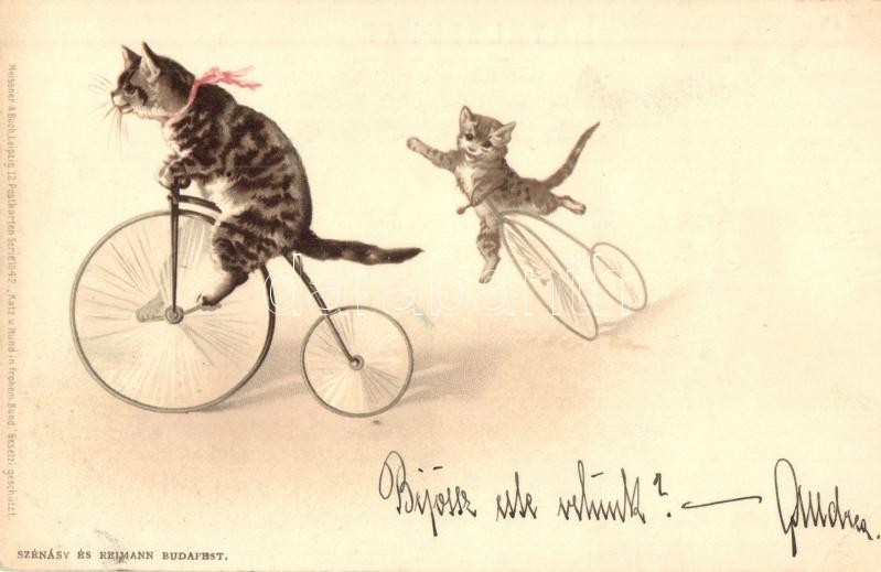 1899 Cats on bicycles. Meissner & Buch Postkarten Serie 1042. Katz... https://www.darabanth.com/de/312-Fernauktion/312.0/Ansichtskarten/Katzen~500037/1899-Cats-on-bicycles-Meissner-Buch-Postkarten-Serie-1042-Katz-u-Hund-in-frohem-Bund-litho-EK~II1706794