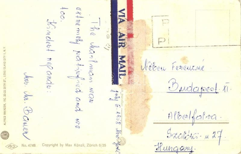 Beschreibung: Cats' picninc, automobile, cow. Alfred Mainzer ALMA No. 4748. Max Künzli (gluemark)