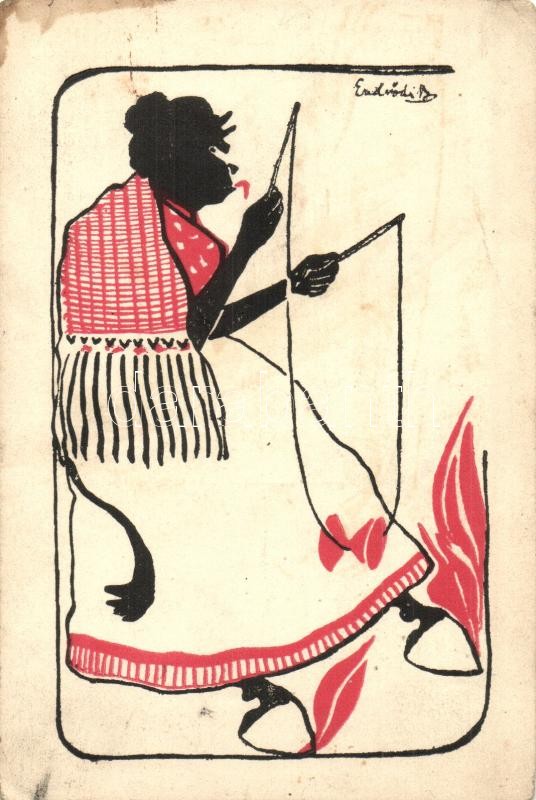 Krampus lady art postcard s: Endrődi (EK) https://www.darabanth.com/de/312-Fernauktion/312.0/Ansichtskarten/Krampus~500033/Krampus-lady-art-postcard-s-Endrodi-EK~II1706849