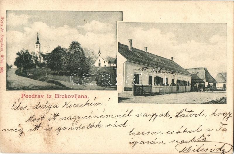 Beschreibung: Brckovljani, utcakép, templom. Weiss & Dreykurs kiadása / street view, church (EM)