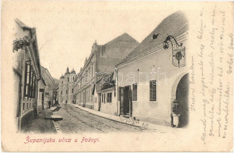 Beschreibung: Pozsega, Pozega; Zupanijska ulica / utcakép / street view (EK)