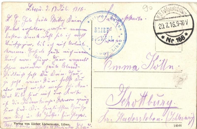 Liepaja, Libau; Synagoge / synagogue. Lieber Liebermann + Feldpost sta... https://www.darabanth.com/de/312-Fernauktion/312.0/Ansichtskarten/Lettland~500069/Liepaja-Libau-Synagoge-synagogue-Lieber-Liebermann-plus-Feldpost-stamp-EK~II1710673