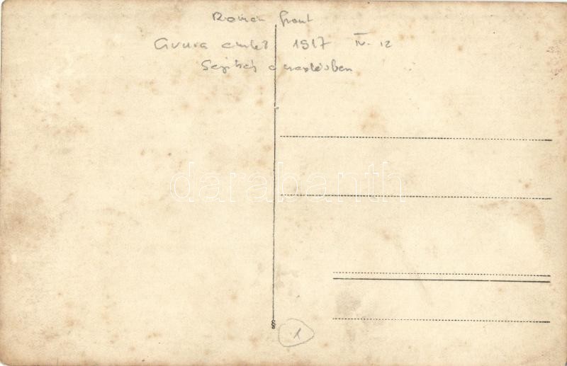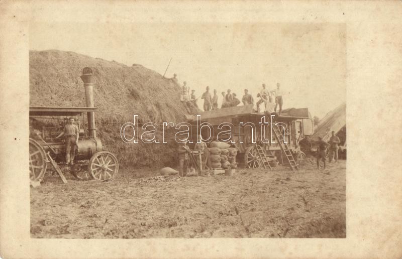 1917 Osztrák-magyar katonák segítenek a cséplésben a Román-fronton, létra / WWI Austro-Hungarian K.u.K. soldiers help with treshing at the Romanian front, ladder. photo (fl)