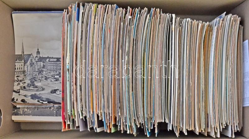 Kb. 700 db modern képeslap dobozban, magyar és külföldi városképes lapok, motívumlapok / Cca. 700 modern postcards in a box, Hungarian and European town-view postcards, motive cards