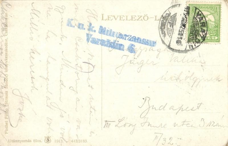 Beschreibung: Csáktornya, Cakovec; Wlassits Gyula utca, Leányinternátus. Fischel Fülöp (Strausz Sándor) kiadása / street view, girl boarding school + K.u.K. Militärzensur Varazdin 6. (EK)