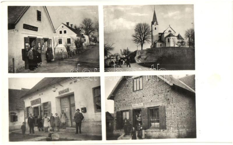 Szarvaslak, Rogasócz, Rogasovci; Rosenberger József, Geder Alajos, Sbull Antal üzletei, vendéglő, étterem, templom / shops, restaurant, church