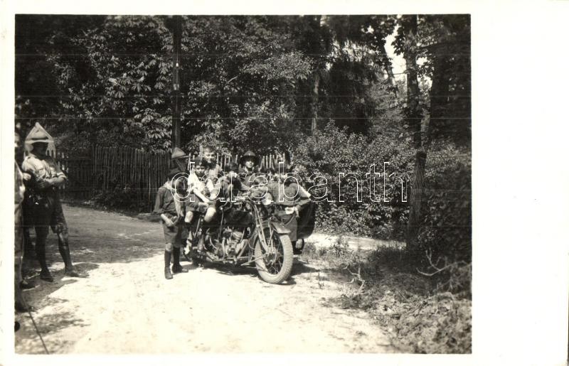 Oldalkocsis motorkerékpár a cserkésztáborban / Motorcycle with sidecar... https://www.darabanth.com/de/312-Fernauktion/312.0/Ansichtskarten/Pfadfinder~500018/Oldalkocsis-motorkerekpar-a-cserkesztaborban-Motorcycle-with-sidecar-in-a-Hungarian-boy-scout-~II1711576