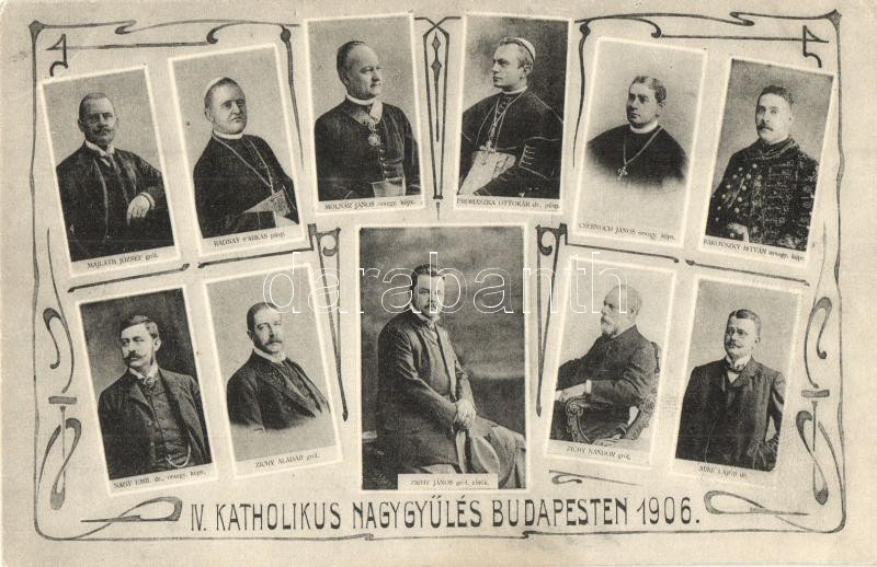 1906 A budapesti IV. Katolikus Nagygyűlés emléklapja (Zichy János, Prohászka Ottokár, Molnár János) / Hungarian Catholic Congress card. Art Nouveau (EK)